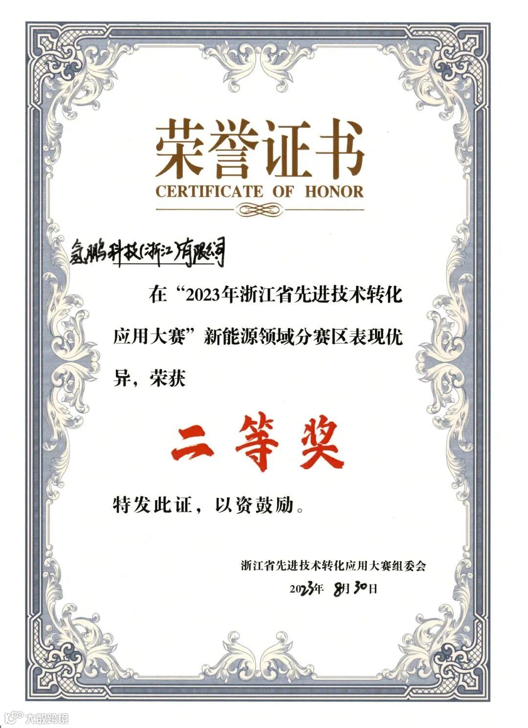 九月获得2023年浙江省先进技术转化应用大赛中获分赛区二等奖