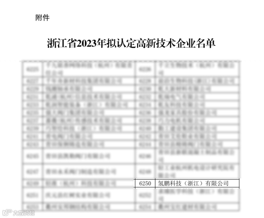 近日,全国高新技术企业认定管理工作领导小组办公室发布《对浙江省认定机构2023年认定报备的第一批高新技术企业拟进行备案的公示》,经过层层审核,氢鹏科技凭借优秀的创新制造能力,研发投入和应用成果,荣获了“高新技术企业”称号,这是公司发展向上、突破前行的一个重要里程碑。