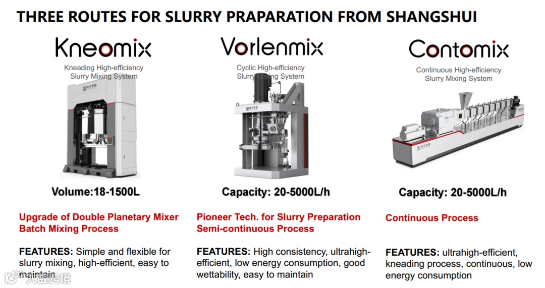 Dr. Qiao SHl emphasized the development history of the industry, stating that traditional electrode preparation techniques are difficult to adapt to large-scale battery market like EV & ESS. At present, Shangshui has pioneered three routes for slurry preparation : Kneomix, Vorlenmix and Contomix, which are suitable for different working conditions like batch mixing, semi continuous, and continuous processes, effectively solving traditional process problems such as low efficiency and high energy consumption.