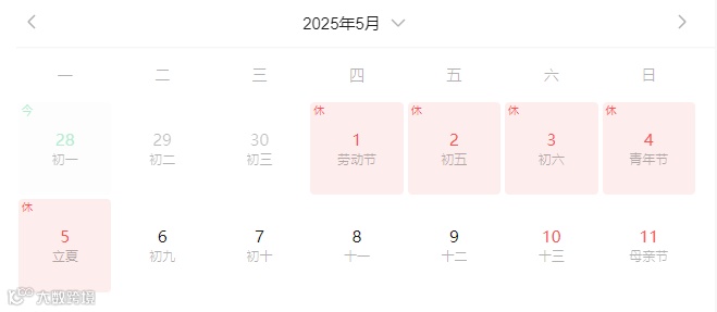 2025年5月5日(星期一)放假