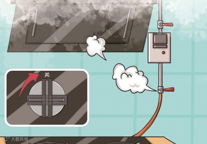 每次出门必自问:“燃气阀关了没?”家人要经常互相提醒,使用燃气时不能离人,做完饭或离开厨房时别忘记关掉燃气灶开关、燃气阀门。