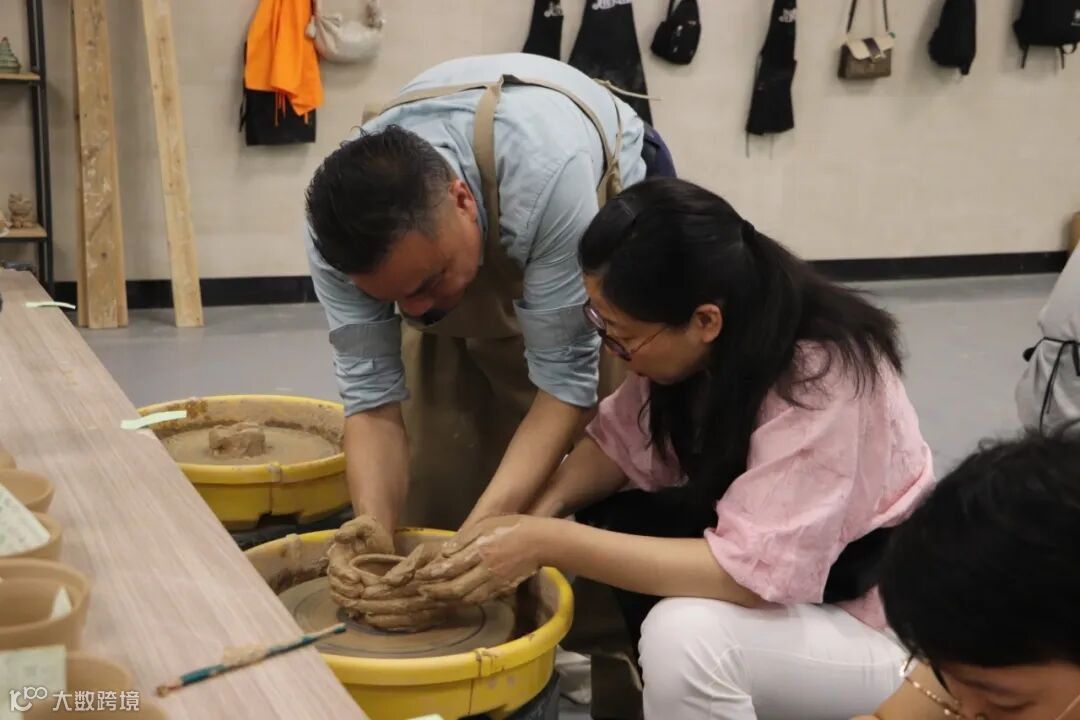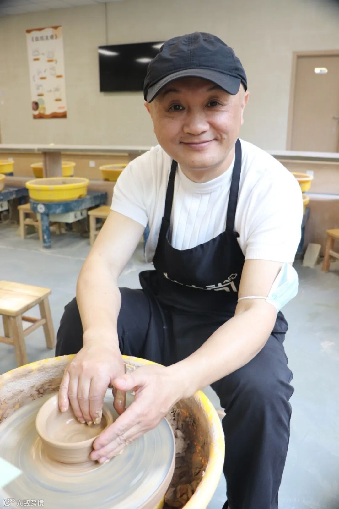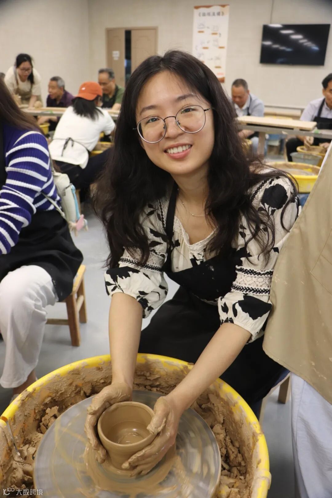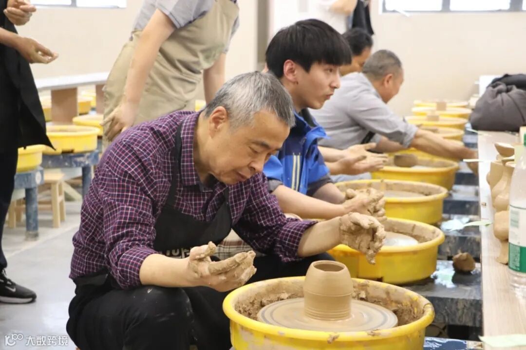 最令人难忘的莫过于拉坯体验环节!在省级工艺美术大师的指导下,成员们从揉泥开始,感受陶土在指尖的旋转与成型。或歪斜或圆润的泥坯,虽不完美,却饱含亲手创作的喜悦。有人笑称:“这一刻,我们都是‘半个手艺人’!”