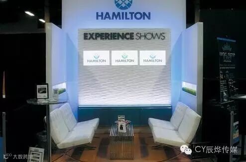 你认为在100平方英尺的展位上没办法拥有一个休息室?再想想吧。在汉密尔顿展会上LCC公司就证明了小展位并没有什么限制,展位上有四个躺椅,一个临时性的金属咖啡桌,木制的三面墙壁围成了空间,在一个引人注目的汉密尔顿logo下边有三个显示器来播放工作循环录像,并有汉密尔顿的标语,在侧壁内设置绿草切口,营造一个自然的氛围,形成一个清凉舒适的空间。