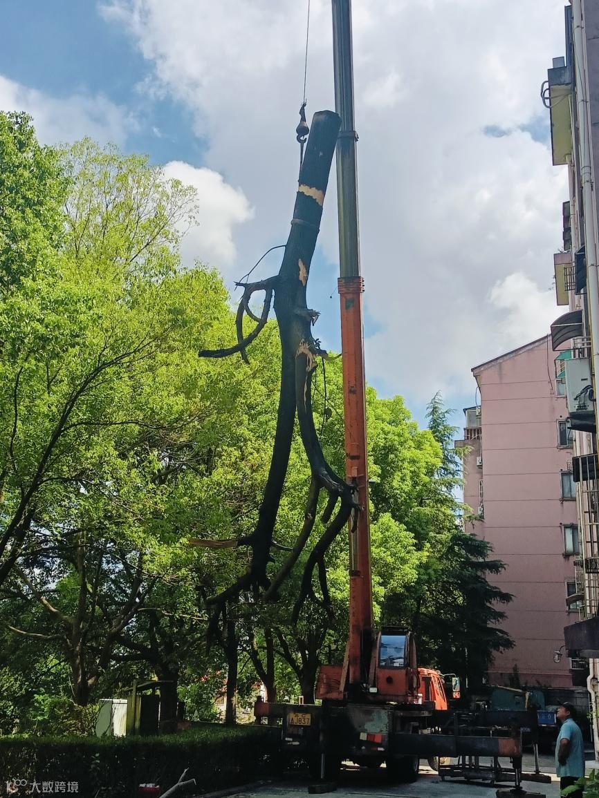 面对这一情况,伯德环境立即调集专业团队及吊车等重型机械设备赶赴现场,对倒伏树木进行分段打捞处置。仅通过一个多小时的高效作业,便成功消除了隐患。