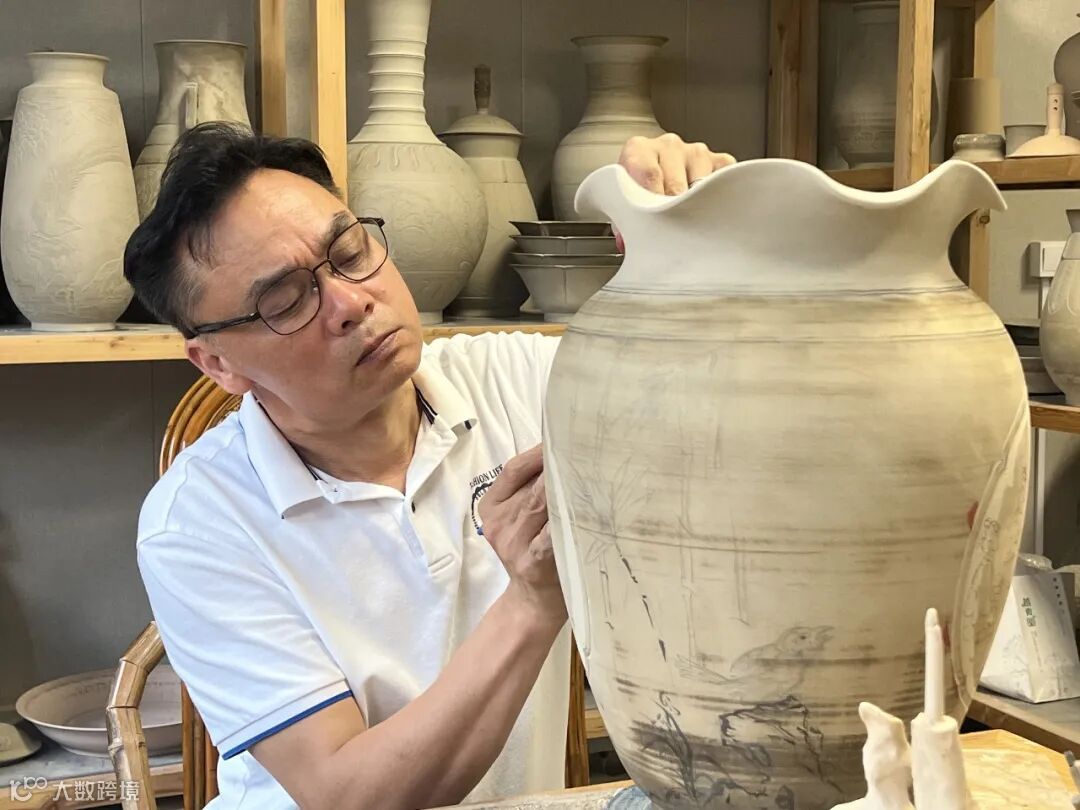 自小喜欢陶艺,因南海沉船1号在他老家打捞出水,因而远赴绍兴深耕越窑,走遍虞山舜水,吃尽千辛万苦,就像一件青瓷作品的涅槃,终成浙江省工艺美术大师。