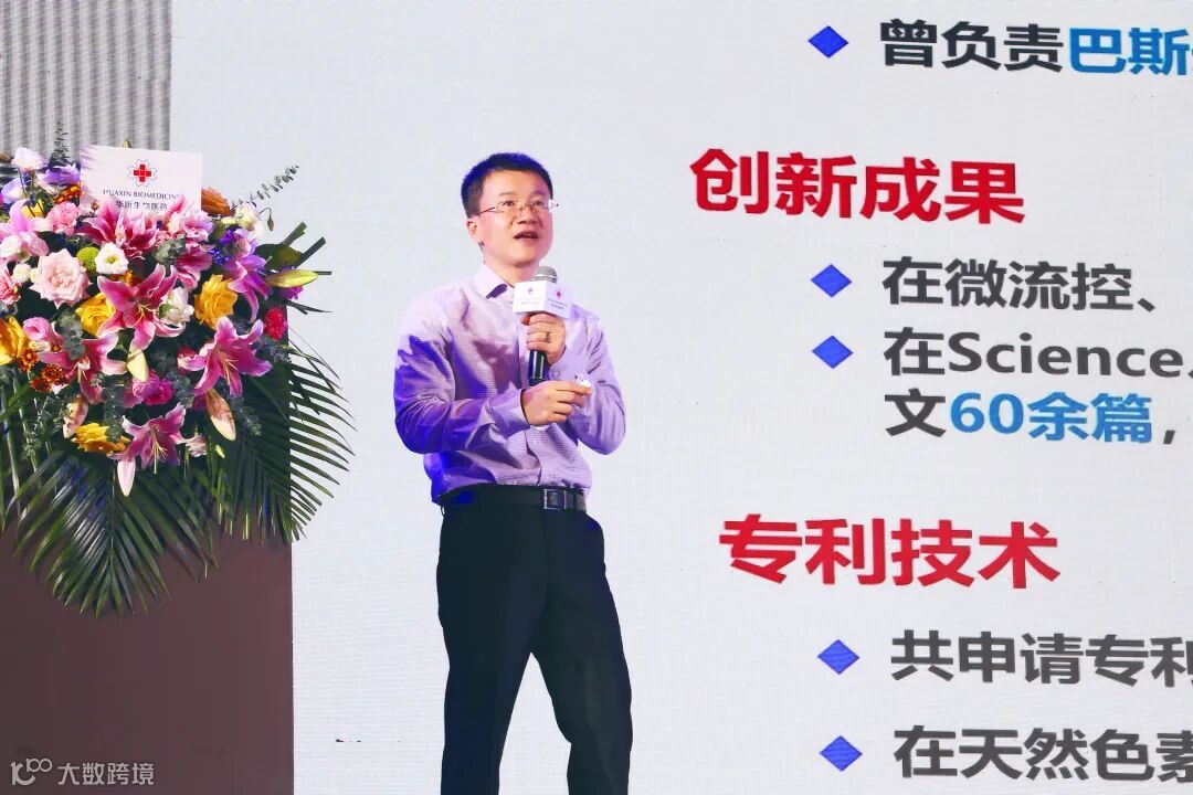 随后,烟台市华昕生物医药科技有限公司总经理韩朝武及研发中心负责人侯建博士上台发言。韩总向与会嘉宾介绍了华昕生物医药的研发团队,拥有博士、硕士、高级工程师等共计50余人。目前已经突破了生物活性因子应用于美容护肤的诸多难题,拥有生物活性因子透皮短肽技术、脂质体包裹技术、高密度发酵技术、高纯度表达分离技术等,目前已拥有20余项专利技术及多项自主科研知识产权。