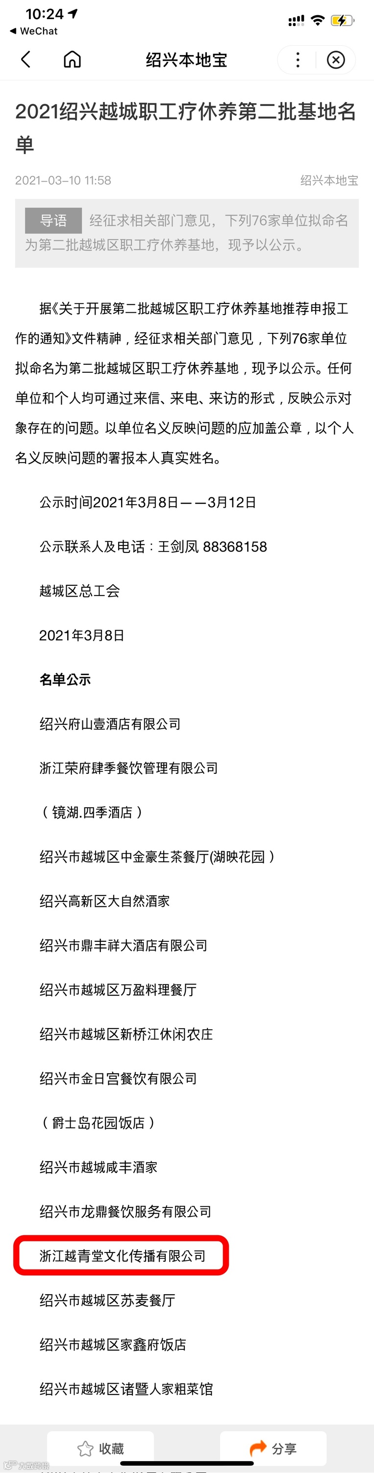 今年3月,越城区总工会根据《关于开展第二批越城区职工疗休养基地推荐申报工作的通知》文件精神,经征求相关部门意见,对76家单位拟命名为第二批越城区职工疗休养基地,进行了公示。