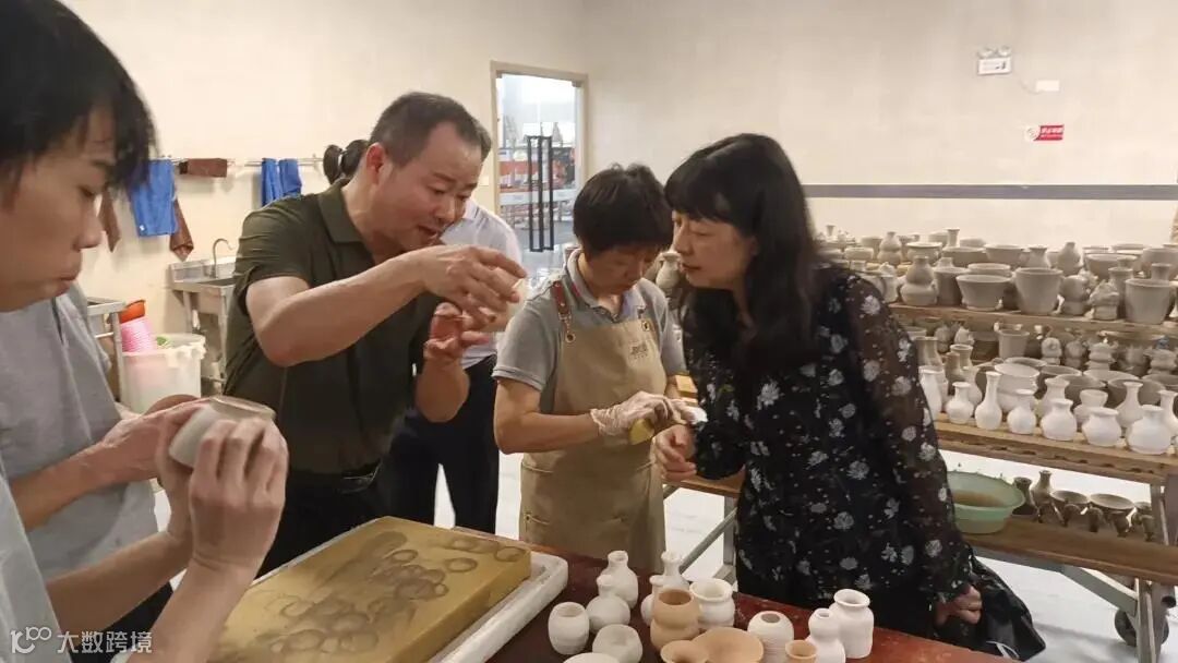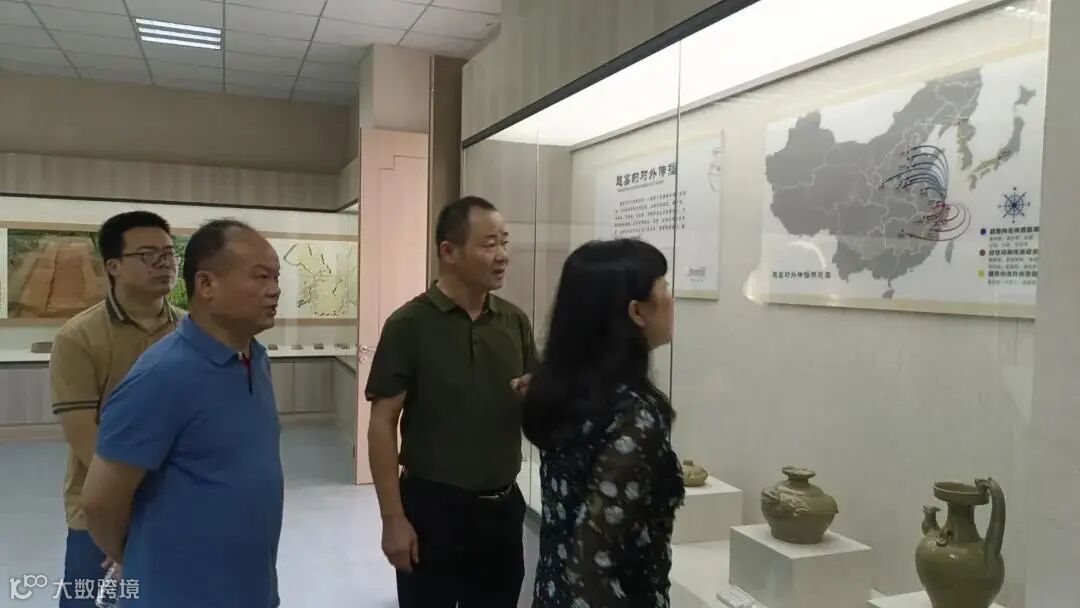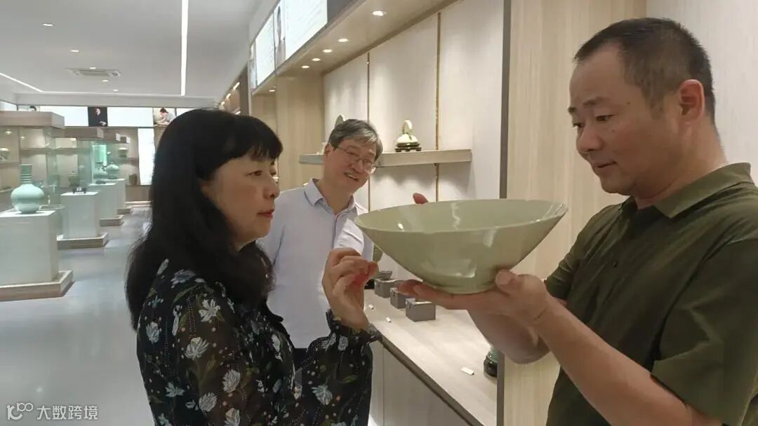 储副厅长一行先实地走访了凤凰山考古遗址公园“瓷国之源”陈列馆,然后来到“越窑青瓷”省级非遗工坊浙江越青堂青瓷文化有限公司,总经理罗洪良详细介绍了上虞越窑青瓷的传承脉络及“前世今生”,以及越青堂产业和研学板块落地运营的情况。