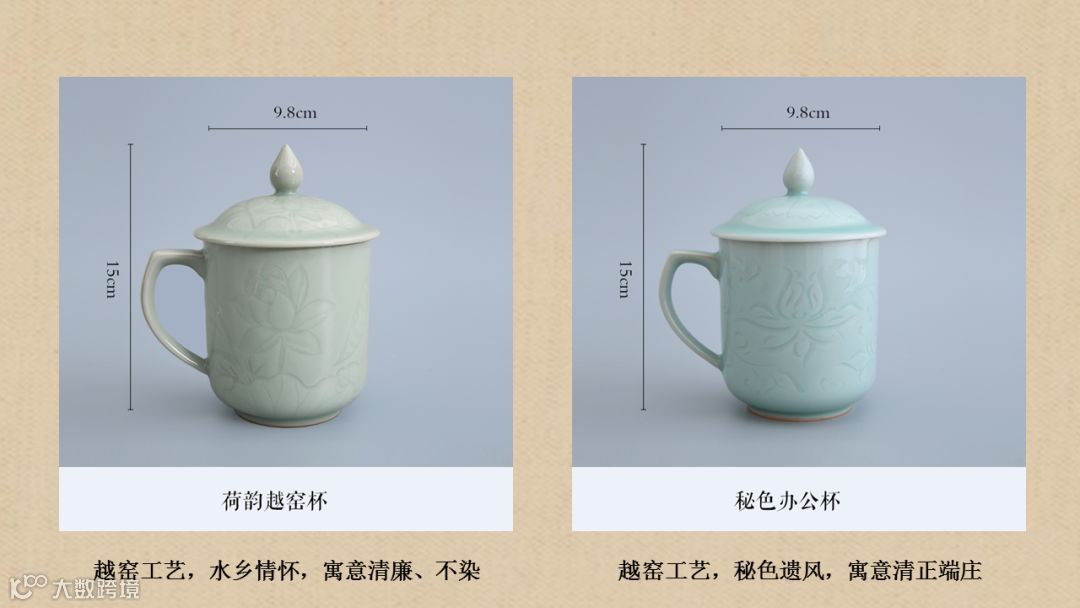 作为大力推广越窑青瓷文化、落地绍兴文创产业的青瓷本土企业,绍兴越青堂愿积极响应号召,倡导绿色,支持环保,特价推出“越过山丘”系列办公用杯,希望关心越窑青瓷文化、支持绍兴非遗的领导和有识之士,选购这个“历代是贡品,当今是国礼”、“古越三宝之一、五行俱全之器”的绍兴文化金名片。