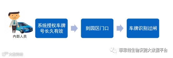 内部人员车辆进出车牌识别,快速过闸,同时可做考勤参考。