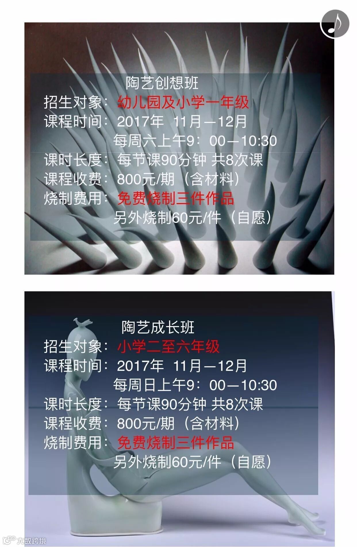 10月28日(周六)下午13:30分青瓷陶艺免费试听课,小朋友们别错过哦!
