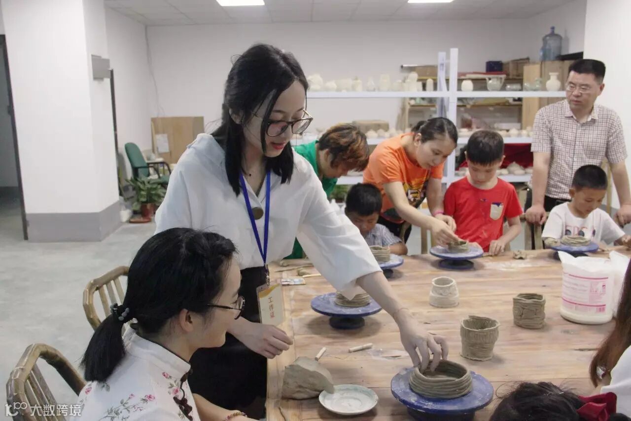 第一课:示范——越青堂工艺师黄老师进行拉坯示范,随后学员进行实际操作体验。