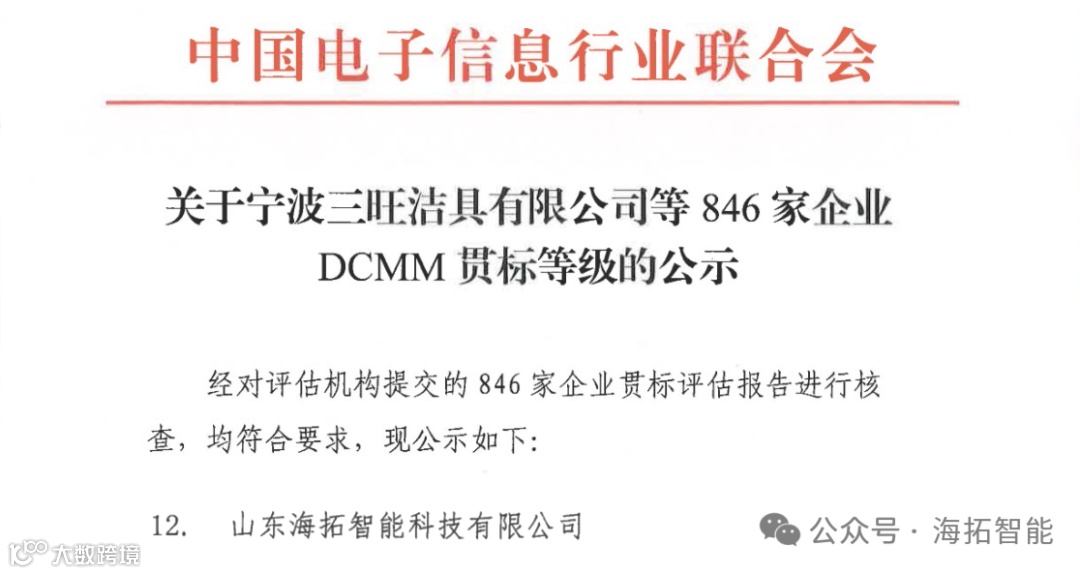 近日,中国电子信息行业联合会公示了新一批通过数据管理能力成熟度模型(DCMM)认证的企业名单,我司荣幸获得了DCMM二级认证(乙方认证)。