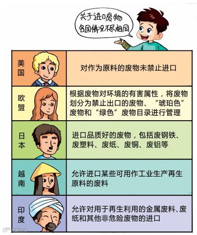 在固体废物进口的道路上,也不止我们一个国家,一个国家是否进口固体废物因素很多,一方面进口可再利用的固体废物来弥补资源的短缺;另一方面与国家的经济结构、产业发展阶段有密切关系,各国情况不尽相同。