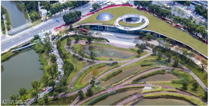 景观湖、亭台楼阁、缓跑道,地面上是漂亮的湿地公园,地下10多米处却大有乾坤, 污水生化处理池、污泥区等有序排列。