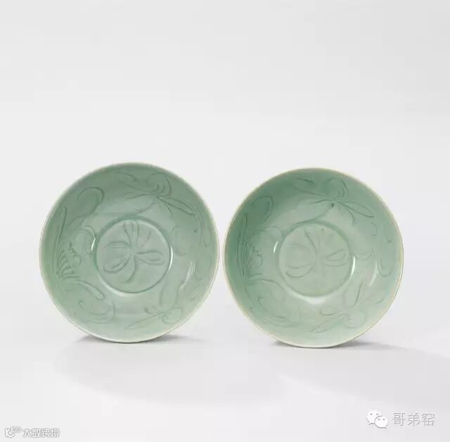 Lot 3128 南宋早期龙泉窑 淡青釉刻花碗一对