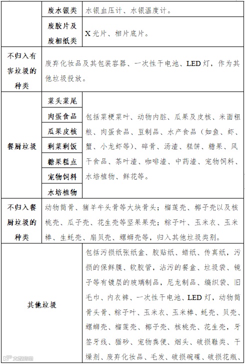 主要包括:混杂、污损、易混淆的纸类、塑料、废旧衣服及其他纺织品、废弃日用品、清扫渣土、骨头贝壳、水果硬壳、坚果、陶瓷制品等生活垃圾。