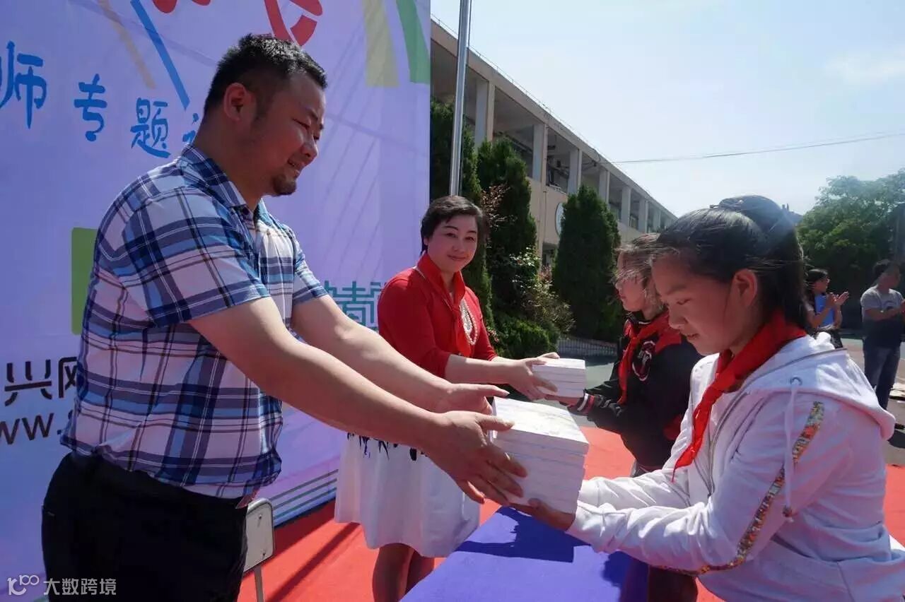 讲座结束,罗总亲自将由越青堂“爱·瓷·善”基金购买的书本赠送给薛渎小学学生。