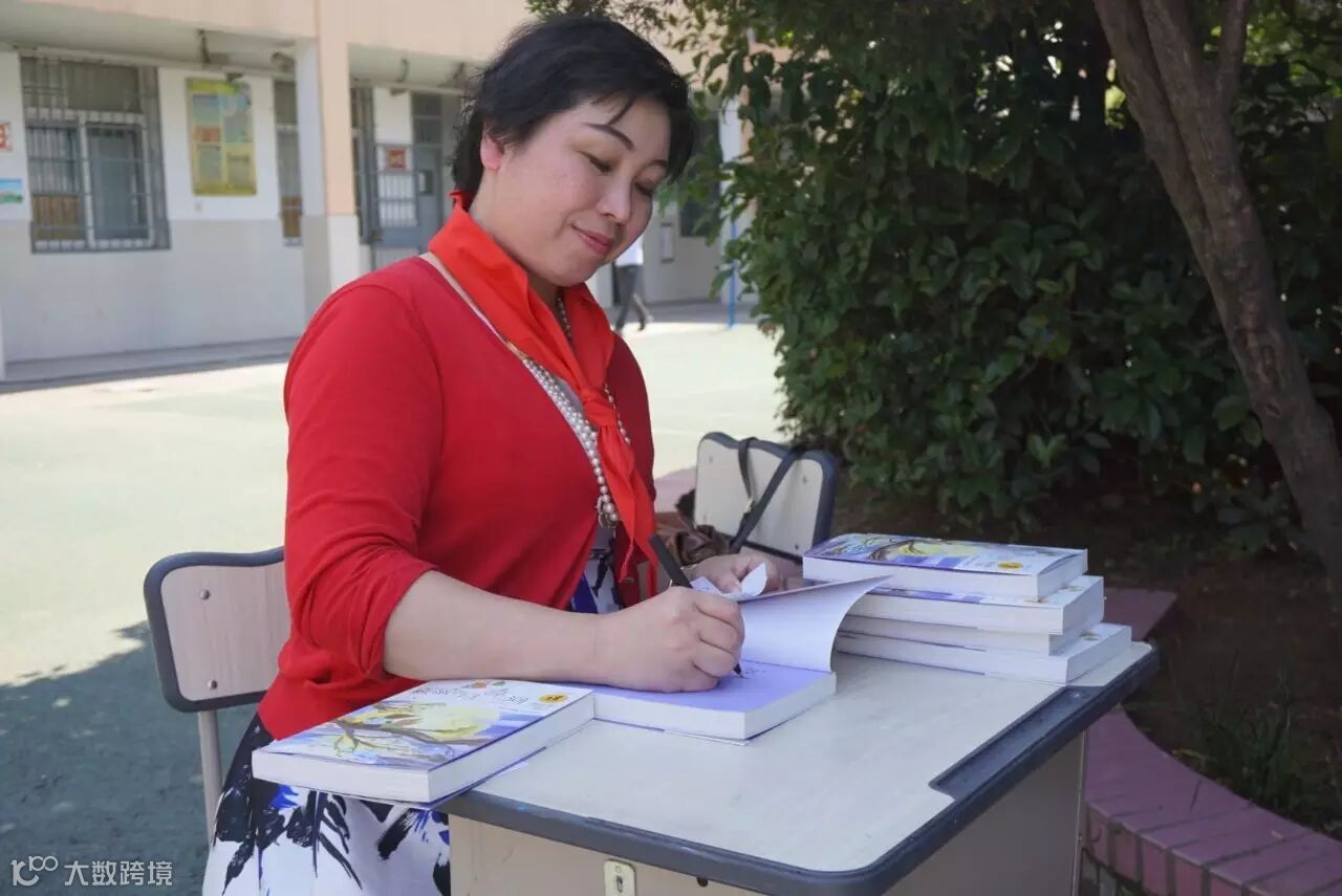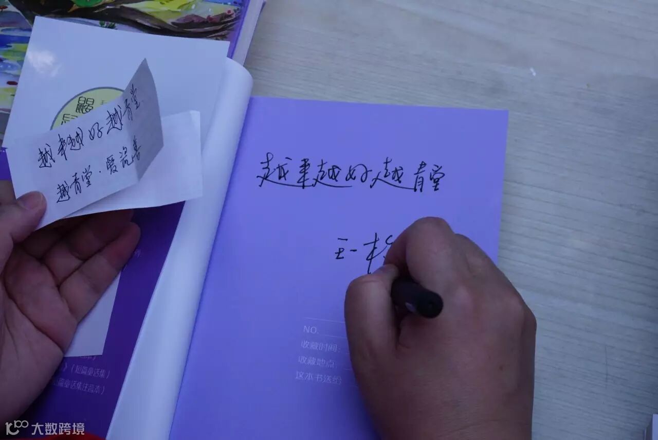 书本分发完毕,学生们有秩序地排着队伍等待王一梅老师的亲笔签名。能够得到喜爱作家的亲笔签名,学生们脸上洋溢着天真、满足的笑容。
