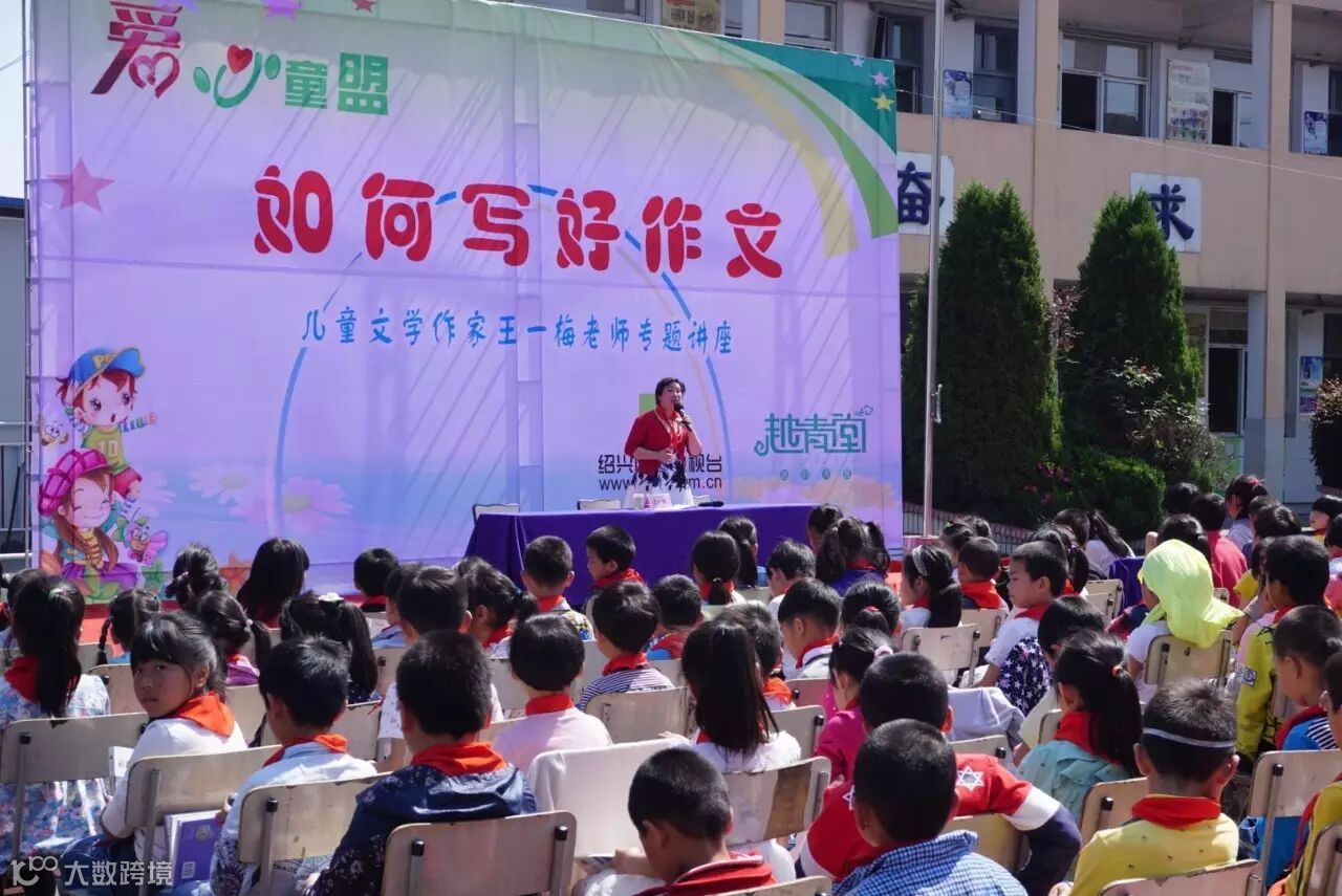 当我们赶到薛渎小学操场时,台上一个身着大红上衣女性用充满朝气、亲切的声音在讲述写一篇好的作文需具备的因素。台下坐着的学生专心致志地听着王老师的讲课,积极回答王一梅老师的提问,充满求知欲望。讲座的最后提问环节,有一小男生问:为什么我写不出您这样的文章?王一梅老师说,写好一篇作文需要平时的积累,包括素材的积累和文字水平的不断进步。