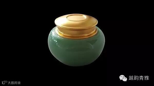 财罐,储茶之器,茶通财,由青瓷罐体和锡合金盖子组成。青瓷罐体素雅宁静,盖子则高贵典雅,财罐底部满釉制作,结合部不添加任何粘合剂,采用精雕工艺镶嵌而成,足见器具的精密、美观。实为家居、办公桌上一件引人瞩目的工艺精品。