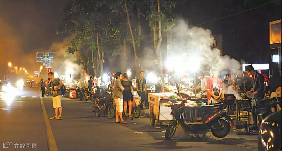 摊主一边吆喝一边用毛巾擦掉被油烟熏出的眼泪