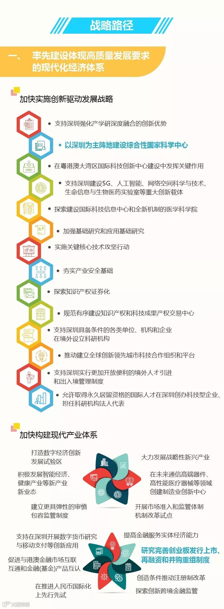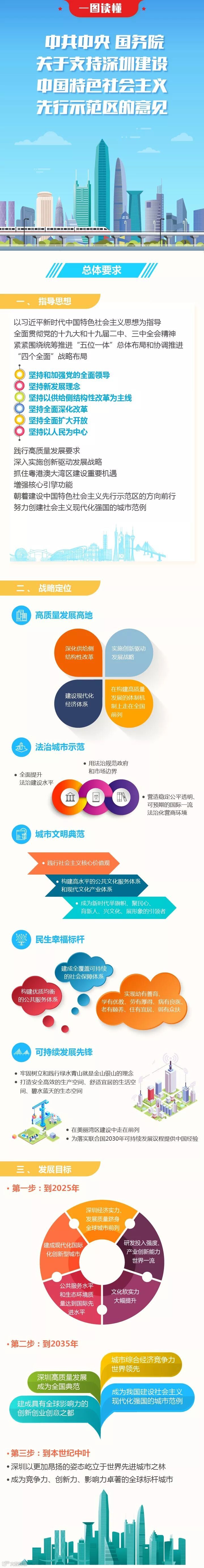 意见明确了深圳战略定位,即高质量发展高地、法治城市示范、城市文明典范、民生幸福标杆、可持续发展先锋。其中,可持续发展先锋战略定位明确要求牢固树立和践行绿水青山就是金山银山的理念,打造安全高效的生产空间、舒适宜居的生活空间、碧水蓝天的生态空间,在美丽湾区建设中走在前列,为落实联合国2030年可持续发展议程提供中国经验。