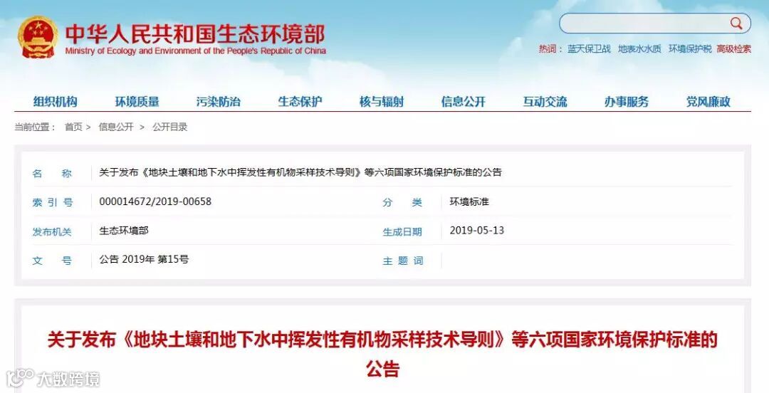 环境部关于土壤采样和地下水采样发布《地块土壤和地下水中挥发性有机物采样技术导则》等六项国家环境保护标准的公告,具体情况如下: