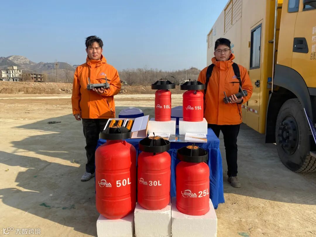山东雷纳2架载重无人机各搭载1枚25L干粉森林灭火弹,无人机在精准飞抵指定火情区域后,于预设高度成功触发引爆机制,瞬间释放超细干粉灭火剂,形成大范围灭火覆盖层,快速压制明火、阻隔氧气复燃。整个投弹灭火过程响应迅速、操作精准,全程无需人员近距离接触火场,完美解决了山林复杂地形下传统灭火方式难以抵达、效率低下的痛点,充分展现了无人机搭载灭火弹在森林火情处置中的实战优势。