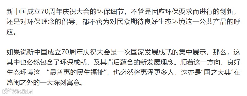 据联欢活动焰火总导演蔡国强介绍,三维动态特效烟花树是焰火表演的一项技术突破。“七棵约25米高、可变幻、多面体的烟花树,象征新中国成立70年来枝繁叶茂、欣欣向荣的巨大成就,也体现生态环保的理念”,而焰火药剂无重金属物质、低硫,均是高科技环保焰火产品。