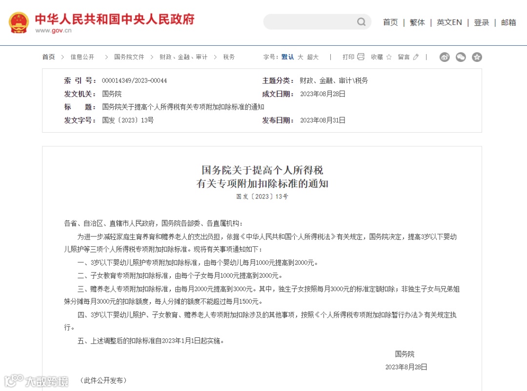 8月31日,国务院发布关于提高个人所得税有关专项附加扣除标准的通知。为进一步减轻家庭生育养育和赡养老人的支出负担,依据《中华人民共和国个人所得税法》有关规定,国务院决定,提高3岁以下婴幼儿照护等三项个人所得税专项附加扣除标准。本文为财政部税政司税务总局所得税司有关负责人就提高3岁以下婴幼儿照护、子女教育、赡养老人个人所得税专项附加扣除标准有关问题进行解答。