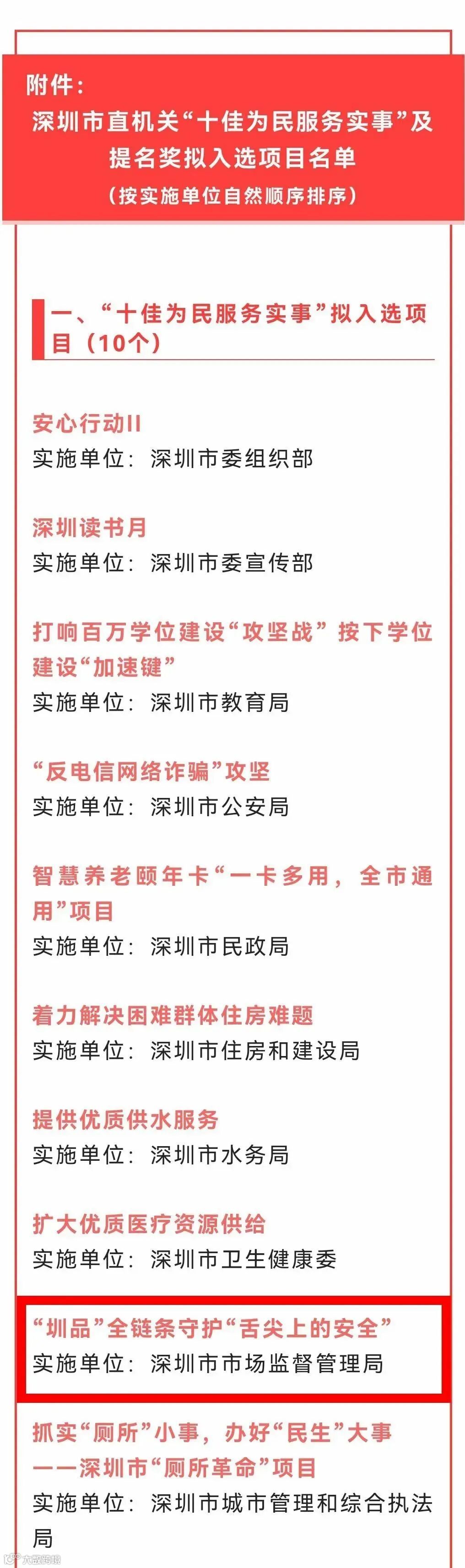 2022年1月6日“‘圳品’全链条守护‘舌尖上的安全’”案例拟入选第九届南都街坊口碑榜“十佳为民服务实事”