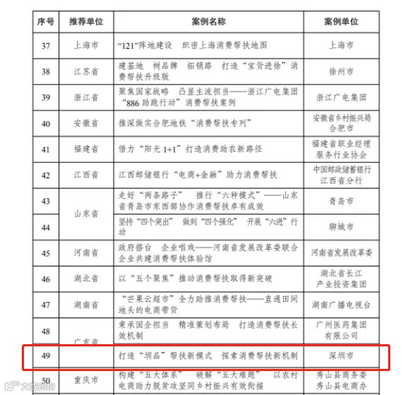 2021年12月2日深圳市《打造“圳品”帮扶新模式 探索消费帮扶新机制》被国家发展改革委评为2021年全国消费帮扶助力乡村振兴优秀典型案例