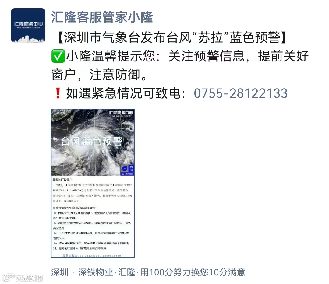 深铁物业厉兵秣马部署降低“苏拉”影响