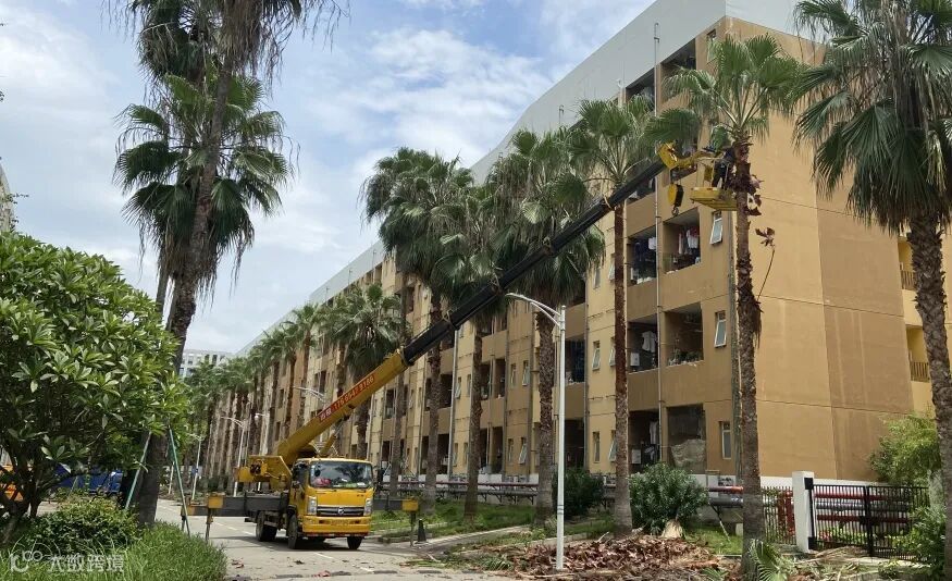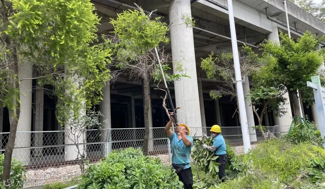 来!把这些树木修剪加固好,超强台风也不怕啦!