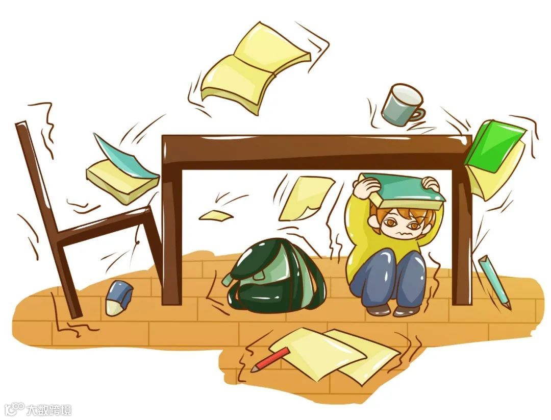 (4)强震颠簸站立难,就近躲避最明见,床下桌下小开间,伏而待定保安全。