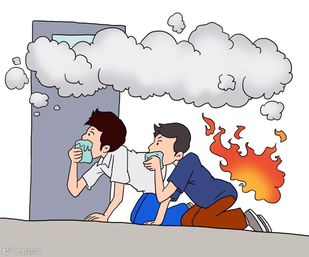 (2)必须穿过火区时,应尽量用浸湿的衣物披裹身体,捂住口鼻,贴近地面。身上着火,千万别奔跑,可就地打滚,将身上的火苗压灭,或跳入就近的水池、水缸、小河等。身处楼上,寻找逃生路一般向下不向上。