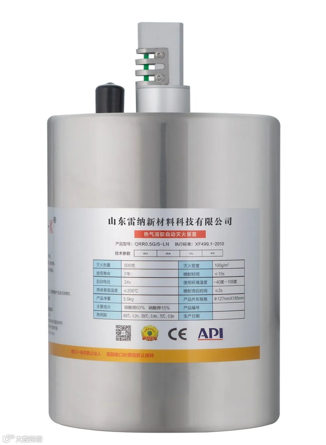 该产品成分为热气溶胶灭火剂(固体化学混合药剂),其产生的气雾,可以中断燃烧的链式反应,抑制火源。其灭火机理主要体现在两方面:一方面是吸热分解的降温作用,另一方面是气相、固相的化学抑制作用,相互之间协同发挥。