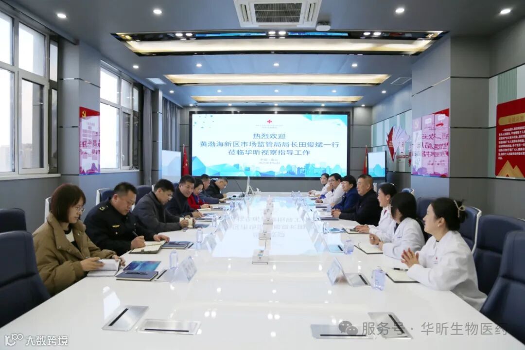 2025年1月6日,黄渤海新区市场监管局田俊斌局长、朱为强副局长,药品安全监督管理处李娜处长,特种设备安全监察处李强处长,行政许可服务处邹治国处长,质量与知识产权监管处刘鸣洋副处长,药品安全监督管理处刘鹏科员,莅临华昕生物视察指导工作,华昕生物医药李乐林董事长携公司高层领导热情接待并陪同。