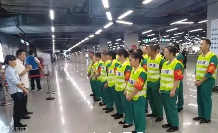 为应对国庆期间出现的大客流,在各主要车站和交通枢纽,保洁人员较平时增加了一倍,做到每一间厕所专人看守,地面卫生分区域专人负责,以防止地面湿滑造成人员摔倒。在焰火晚会结束次日又集中保洁力量,加大清扫力度,迅速恢复各交通站的清洁卫生,保证地铁运营清洁安全环境。