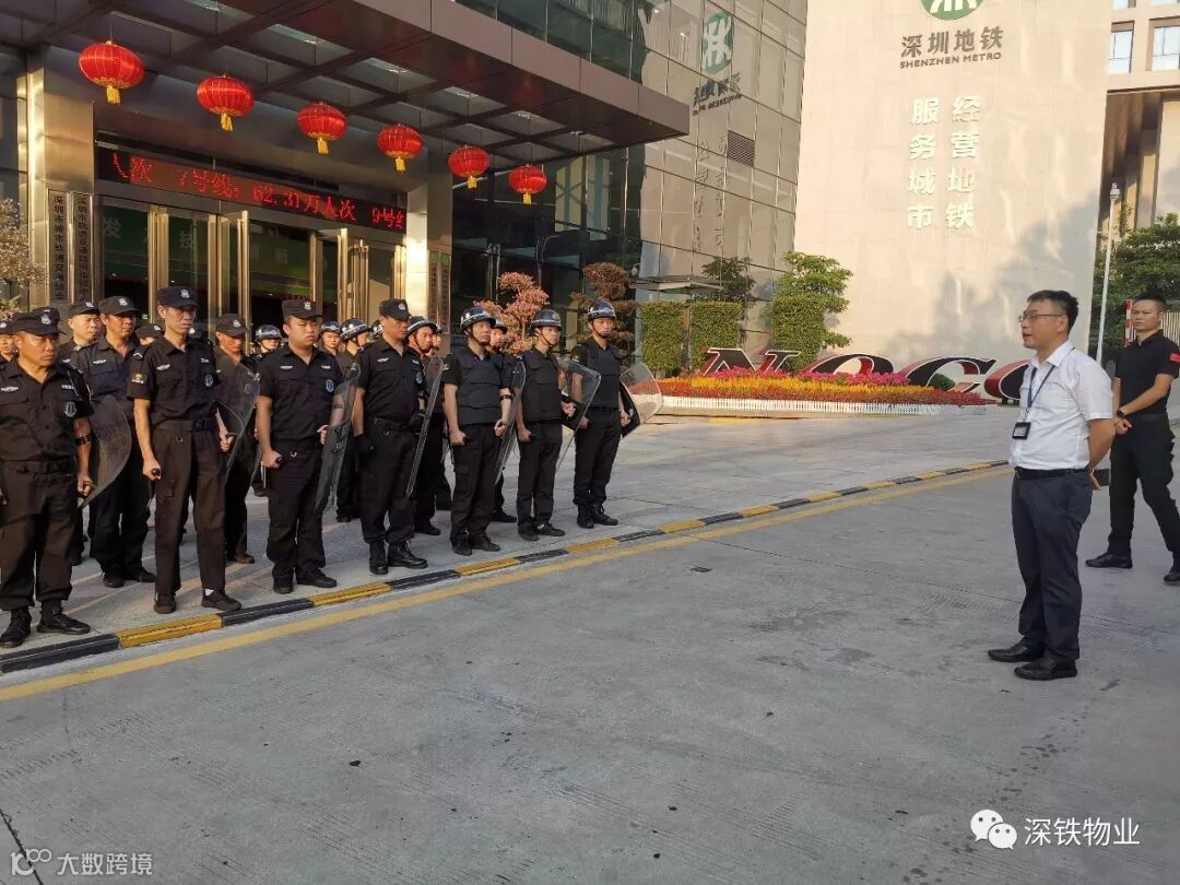10月1日,为保障国庆期间市民乘客出行的安全、舒适、顺畅,协力深圳烟花晚会、灯光秀顺利圆满,深铁物业各领导分片区督导检查,分赴一线检查指挥,加强重点区域重点防控 ,要求车站、枢纽相关工作人员务必做好高峰时段大客流的安全秩序维护、人流疏导和清洁卫生保障。为应对紧急状况,成立福田枢纽现场指挥部,加强对现场人员安全、服务培训,联合深铁运营、运管办等兄弟单位开展联合应急演练。同时,成立以深云车辆段管理处等为主要力量的安保应急支援力量,24小时待命,随时支援现场。