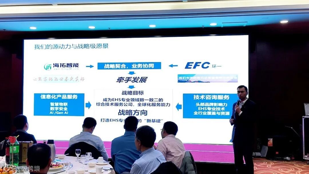 环一科技的 CEO 唐秉杰先生表示与海拓智能的战略达成,其战略目标是成为EHS专业领域数一数二的综合技术服务公司,全球化服务能力。战略方向是打造EHS专业领域的“新基建”。