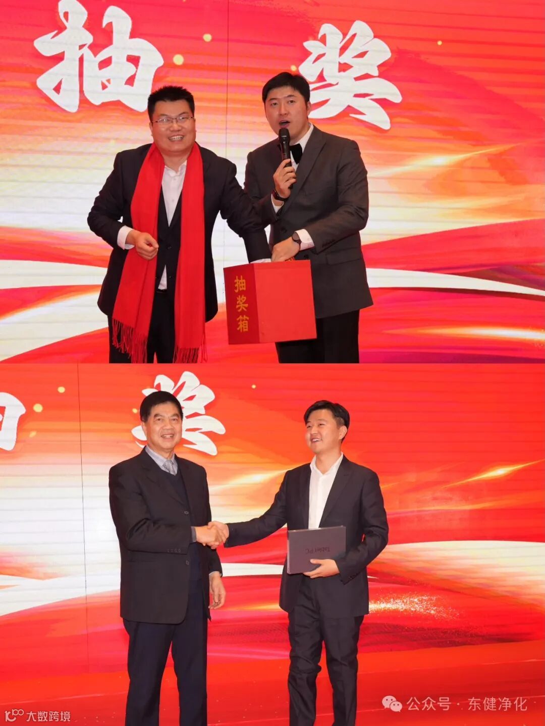 创始人丁远强作了工作报告,报告指出上年度各项经济指标上升30%-50%,在大环境影响下,东健逆行发展,得益于党的政策、各级领导支持,全体员工的共同努力。