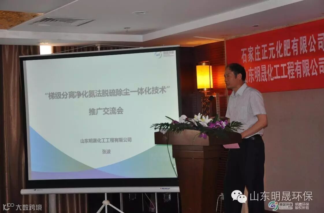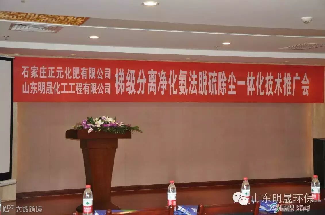 5月28日,中国工业环保促进会、河北省环保厅、石家庄市环保局,在河北省石家庄市灵寿县正元化工集团联合举办了山东明晟化工工程有限公司研发的“梯级净化分离氨法脱硫除尘一体化超低排放技术”的推广会。