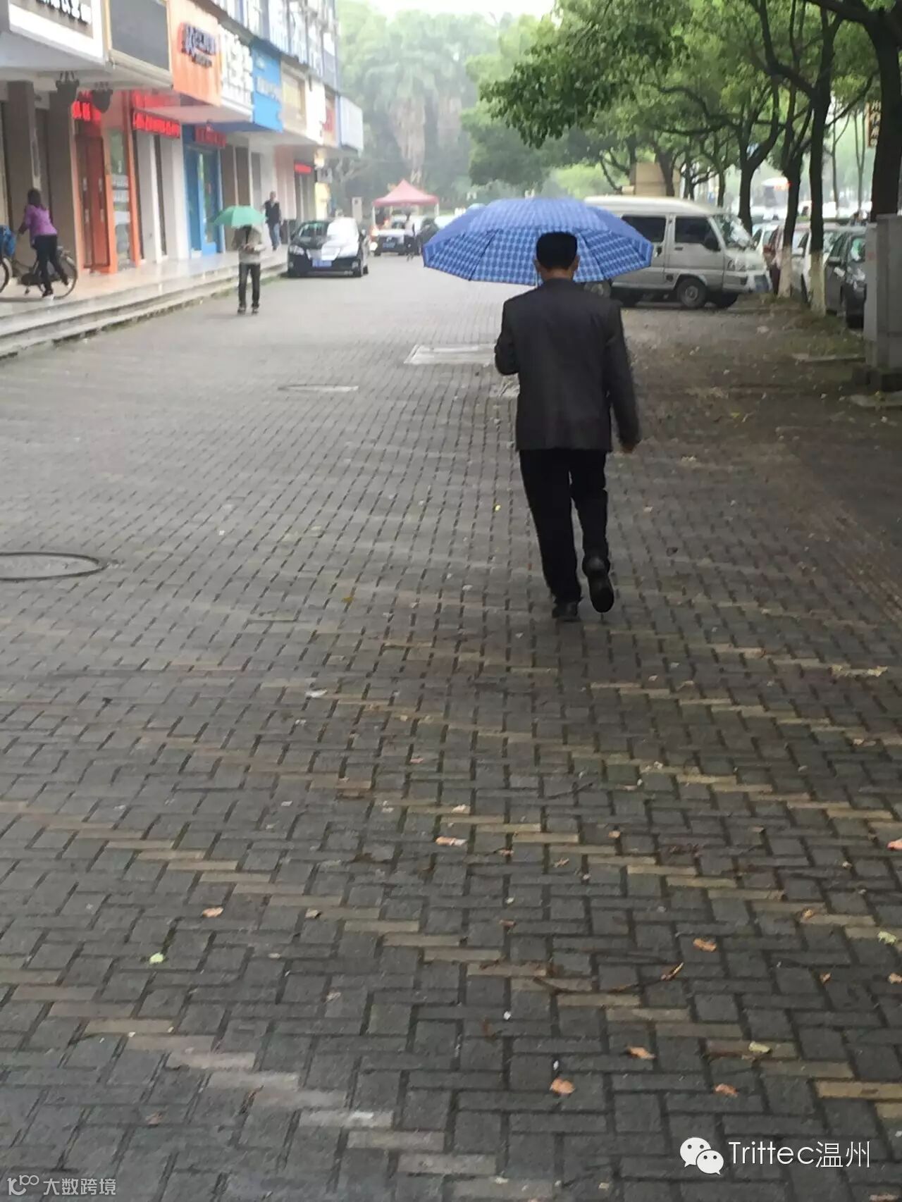 大哥你带错装备啦,今天是霾不是雾,该带的是防雾霾口罩,不是雨伞