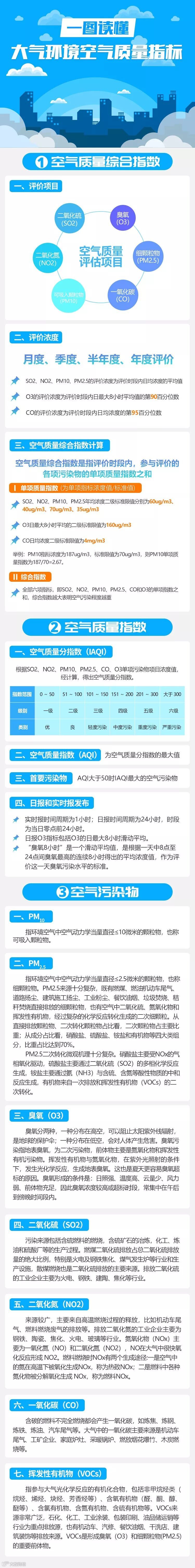 大气环境空气质量指标:《环境空气质量标准》(GB3095-2012)中规定的6个基本项目:二氧化硫(SO2)、二氧化氮(NO2)、可吸入颗粒物(PM10)、臭氧(O3)、一氧化碳(CO)、细颗粒物(PM2.5)。