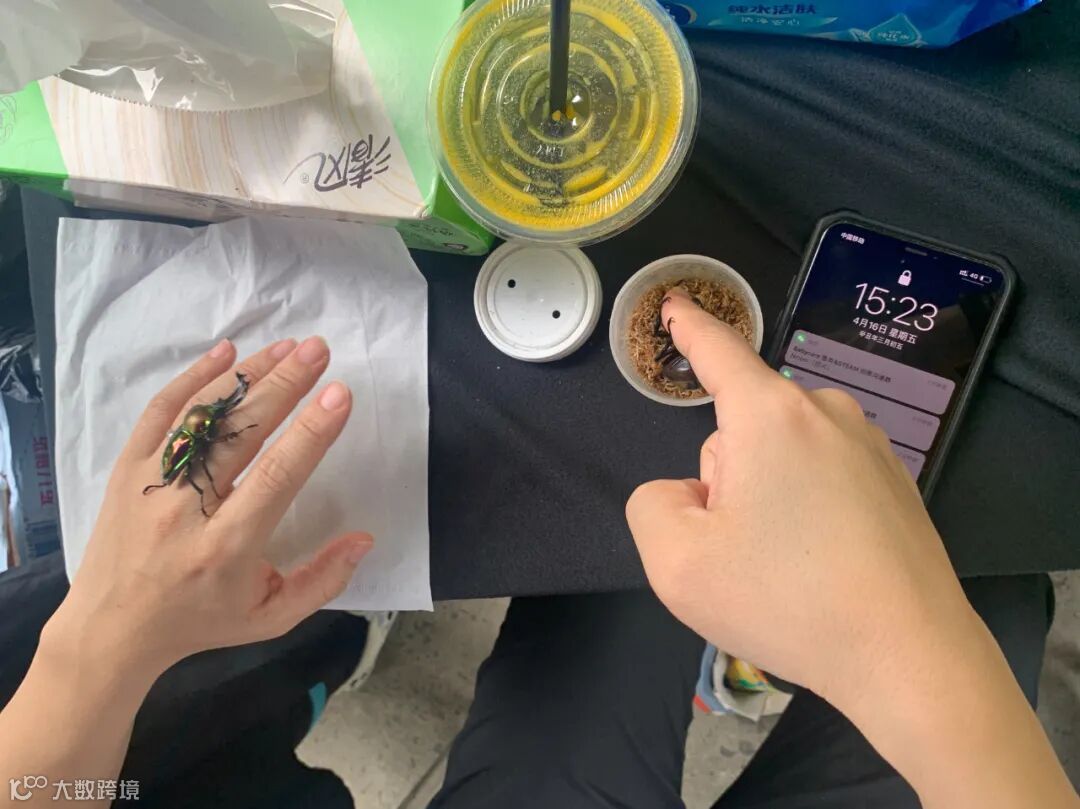 拍一个宝宝和小动物互动的反应镜头,专门从花鸟市场重金选购了六七种叫得上来叫不上来名字的壳体虫子,最终PK掉其它选手成功出道的,就是这支深受导演喜爱、壳体斑斓的独角仙👇