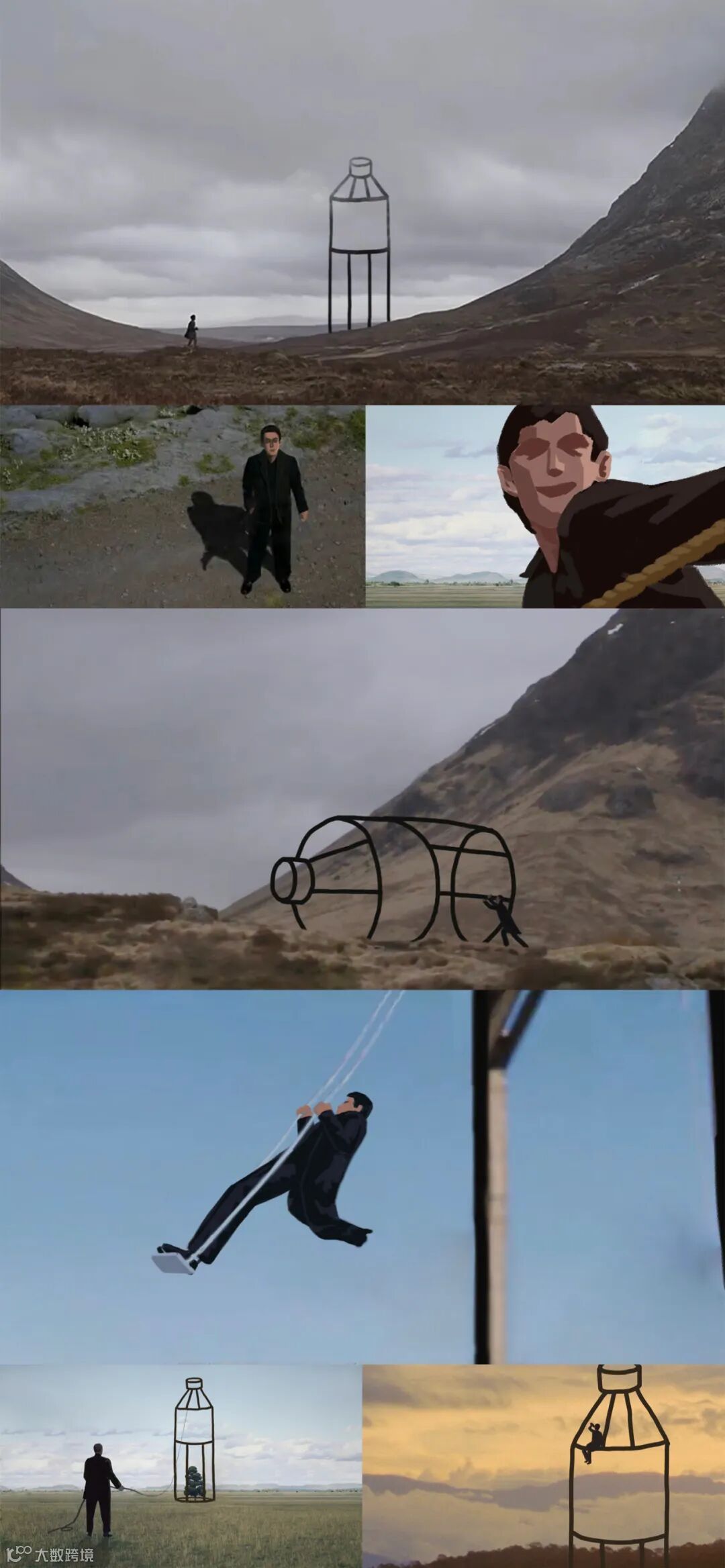 我们执意地想在写意里加入点“成年人的顽皮”,这样才有新茶饮的感觉。其实陈坤本身也有这样的气质。所以我们给陈坤设计了个“大玩具”,巨大的铁艺PET装置。它在天地间一立,框住风框住云框住夕阳美景,写意又特别。同时,陈坤又能推着它去捕捉稀有好茶、在它瓶身上荡秋千、坐在高高的瓶顶品茶,展现成年人内心顽皮的一面。