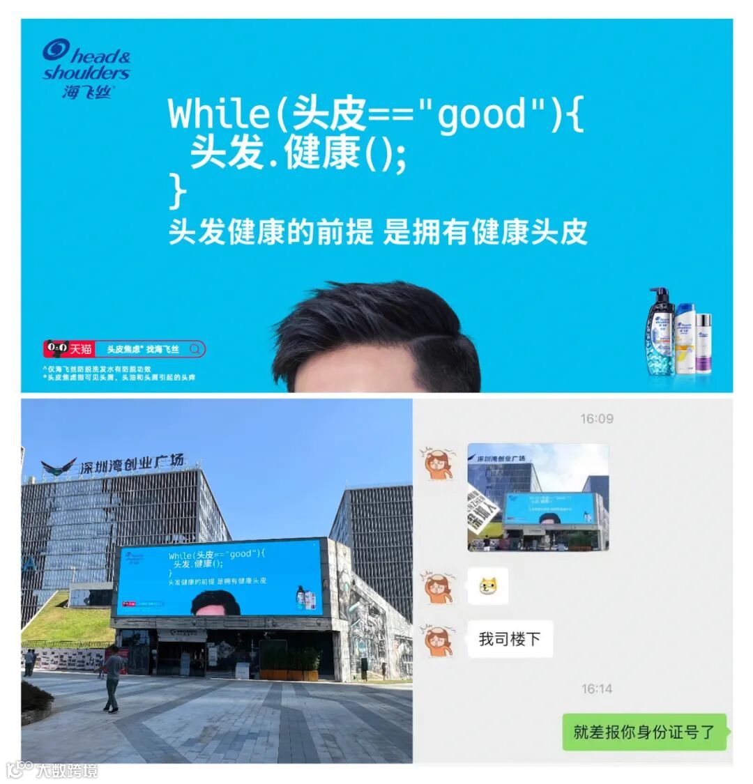 同时为了让整个话题传播更有声量,我们借10·24程序员日,在程序员最常出没的地方,投放了相关的大幅硬广,向程序员们的头皮致以衷心的祝福,也触动了程序员们的头皮。