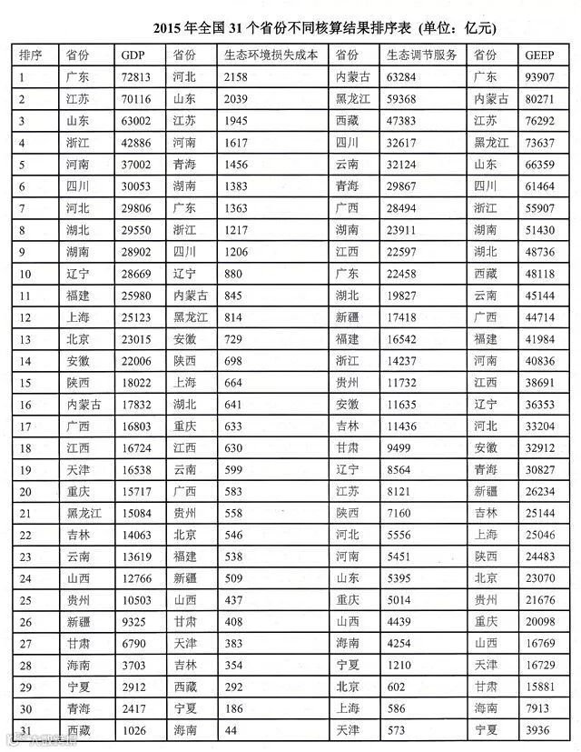 生态环境部环境规划院近日完成《中国经济生态生产总值核算发展报告2018》(下称《核算报告2018》),课题组构建了经济-生态生产总值(GEEP)综合核算框架体系,并按GEEP对我国31个省区市进行了排名。